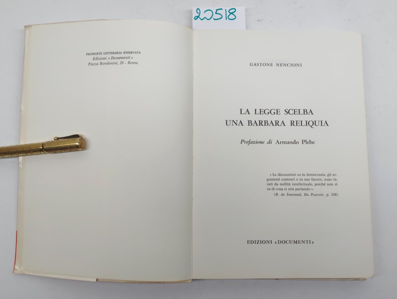 Gastone Nencioni La legge Scelba una barbara reliquia prefazione di Armando Plebe Edizioni Documenti 1973