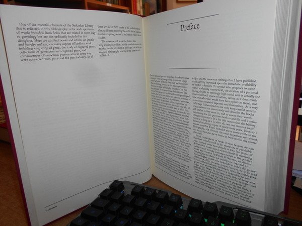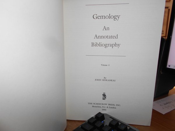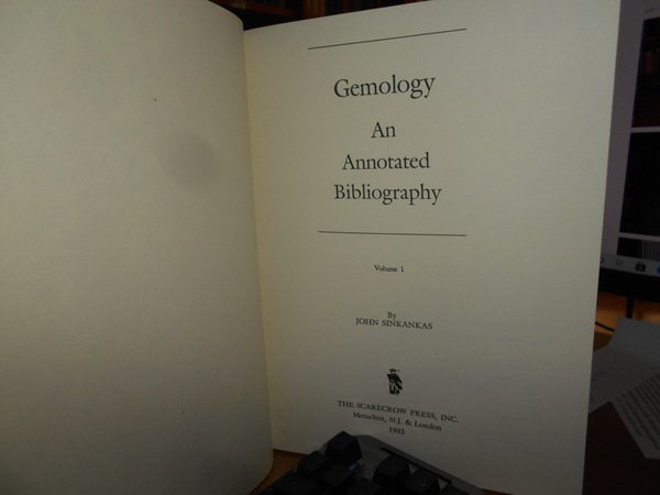 by JOHN SINKANKAS. Metuchen, N.J. & London, The Scarecrow Press, 1993. GEMOLOGY An Annotated Bibliography. 2 volumi in-4°, tela rossa con titoli in oro sui piani e nei dorsi. xxxiii, 570-1179 pp. con numerose riproduzioni n.t. Esemplare come nuovo. Uff. C. III - 1. Vendibile solo in Italia