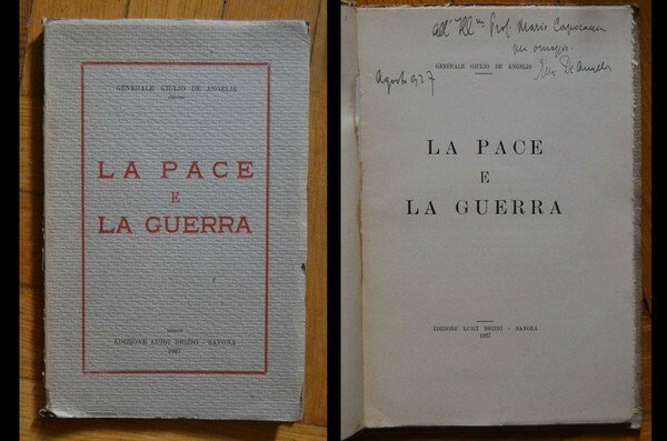 *Generale Giulio De Angelis - La pace e la guerra. con dedica e firma dell'autore. 1927