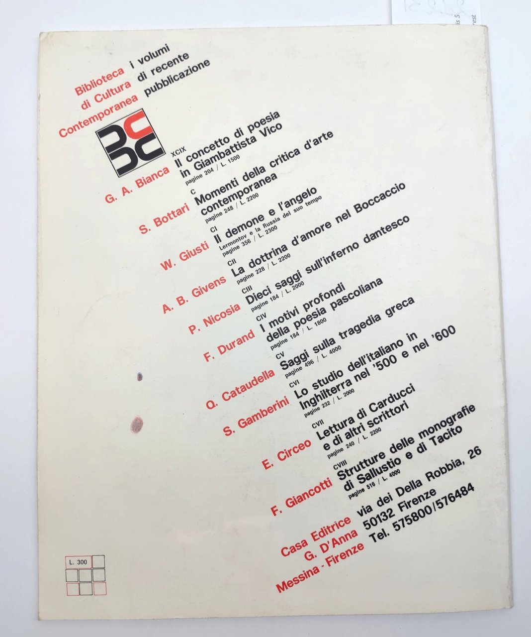 Legatura morbida editoriale in discreto stato, alcune lievi sporcizie ai margini dei piatti, una piccola piega all'angolo superiore del piatto anteriore, interno in buono stato, alcune sottolineature a matita blu nel testo in circa 4/5 pagine, tagli con fioriture n. pagine 40 dimensioni cm 30,5 * 24