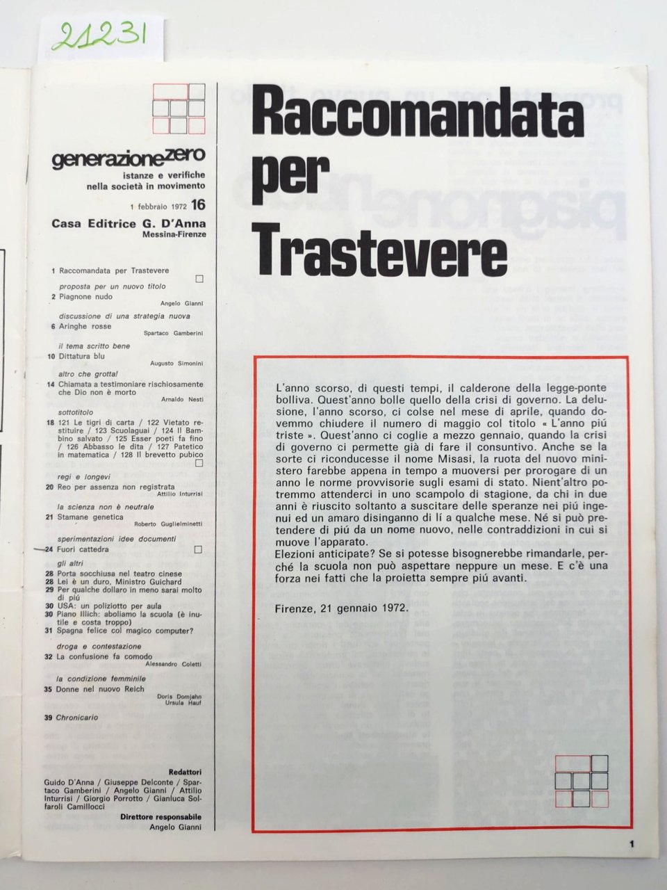 Generazione zero n. 16 1 febbraio 1972 D'Anna