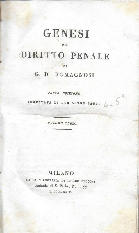 Genesi del Diritto Penale. Terza edizione aumentata di due altre parti.