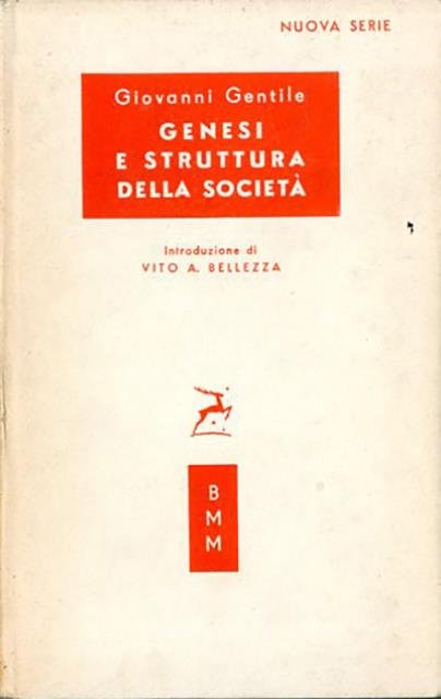 2. ed. 231 p. ; 19 x 11 cm. Biblioteca moderna Mondadori. Nuova serie, 372. L'opera fu pubblicata postuma nel 1946. Secondo il progetto elaborato tra gli anni Quaranta e Cinquanta dalla "Fondazione Giovanni Gentile per gli Studi Filosofici", "Genesi e struttura della società", che porta il sottotitolo "Saggio di filosofia pratica", costituisce il vol. IX delle "Opere Sistematiche" del filosofo. In tale collezione fu pubblicato prima dalla Casa Editrice Sansoni e poi dalla Casa Editrice Le Lettere, sempre di Firenze. Il volume fu scritto di getto, come ricorda la nota dell'editore, tra l'agosto e i primi di settembre 1943 a Troghi (Firenze). L'avvertenza del filosofo porta la data 25 settembre 1943. Ivi Gentile precisa che lo scritto riprendeva un gruppo di lezioni tenute nell'anno accademico 1942-43 nell'Università di Roma sulla dottrina trascendentale del volere e della società. Il punto di partenza è il concetto di disciplina come governo del costume all'interno del processo etico. Pertanto la concretezza dell'individuo non è l'esistenza sensibile nello spazio e nel tempo, ma quella dell'essere che esiste nello spirito come autocoscienza. La realtà dell'individuo come socius conduce alla società trascendentale o società in interiore homines. Il volere come volere comune e universale è lo Stato, la cui volontà è diritto (pubblico e privato). Ma lo Stato non è mera economicità come avviene nel liberalismo e liberismo. Lo Stato, al contrario, ha un suo carattere religioso che scaturisce dalla moralità che gli è immanente. Lo Stato, pertanto, è storia in un processo in cui i cittadini si raccolgono nella comune res publica, attraverso il lavoro, il compito che ogni cittadino svolge. È la tesi dell'umanesimo del lavoro, il quale succede all'umanesimo della cultura. Il che implica che l'attività politica dell'uomo in concreto è e dev'essere la stessa attività etica. Introduzione di Vito A. Bellezza. Legatura editoriale, coperta in cartone rigido con titolo impresso in negativo al piatto e al dorso in un riquadro rettangolare di colore oro. Sovraccoperta in carta con alette. Qualche segno del tempo alla sovraccoperta (dorso ingiallito), alcune sottolineature a matita, per il resto libro in buono stato. Codice libreria 8803.