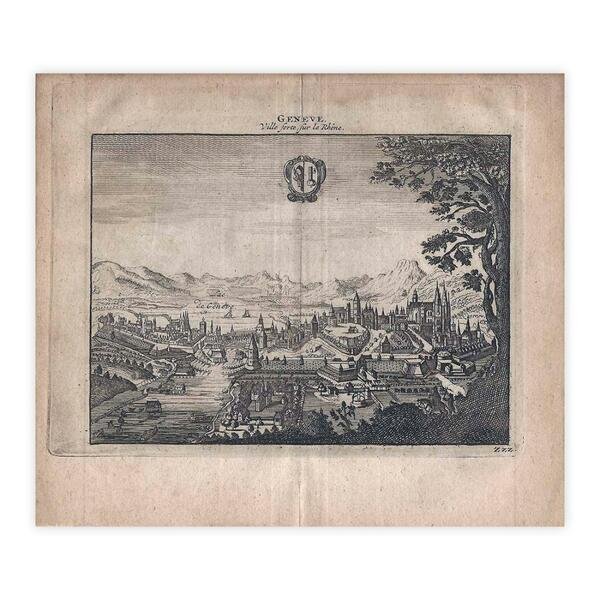GENEVE Ville forte, Sur le Rhône - cm 17,5 x 15,5 Folio