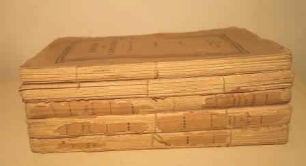 Santa Croce, presso Vincenzo Bartoletti, 1829; TOMO I. DOGMI E DOTTRINA; TOMO II. POLITICA DEL CRISTIANESIMO; TOMO III. BELLE ARTI E LETTERATURA; TOMO IV. CULTO; TOMO V. Brossure originali con cornici silografiche in copertina, anche al retro, dorsi assenti, parzialmente slegati, piccoli difetti a qualche copertina, testo pulito, pagine con ampi margini, non rifilate. Aloni di gora a qualche pagina senza ledere la lettura. In 8°, pp. 203, 198, 221, 244, 244. Nonostante il titolo possa dar adito a fraintendere che si tratti di un libro di sola religione, in realta' e' un excursus su varie tematiche come: Universo, Natura, Zoologia, Archeologia, Storia, Mitologia, Arti, Mestieri, Politica, Ordini mIlitari ed altro ancora, il tutto visto però sotto l'ottica della Creazione Divina.