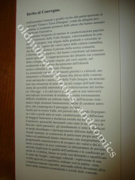TITOLO: GENTE E TERRA D'IMAGNA ATTI DEL CONVEGNO DI SANT'OMOBONO IMAGNA 15 aprile 13 maggio 1993 DESCRIZIONE: Il Pomerio Lodi 1996 br. ed. con sovracc. ill. col. con alette pp. 370 num. ill. b/n n.t. foto e schede tecniche in 8°. CONDIZIONI: Discrete/Buone evidente gora al dorso e macchie al retro di copertina. PESO / WEIGHT: 1000 gr. without package