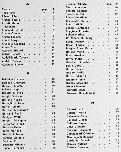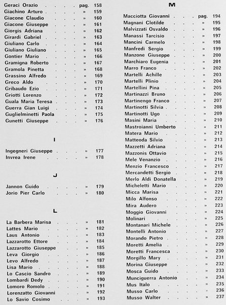 (Codice LO/5224) Folio (38x28 cm) XXIV-351 pp. Presenta circa 350 artisti piemontesi, ad ognuno è dedicata una pagina: ritratto e due opere in nero, biografia, nota tecnica, quotazioni. Tra gli altri: Mastroianni, Galvano, Soffiantino, Colombotto Rosso, Menzio, Gazzera, Gribaudo, Pozzo, Daphne Casorati. Elegante edizione, grande volume in tela originale, titolo oro al dorso e al piatto. Ottimo. ~~~ SPEDIZIONE IN ITALIA SEMPRE TRACCIATA