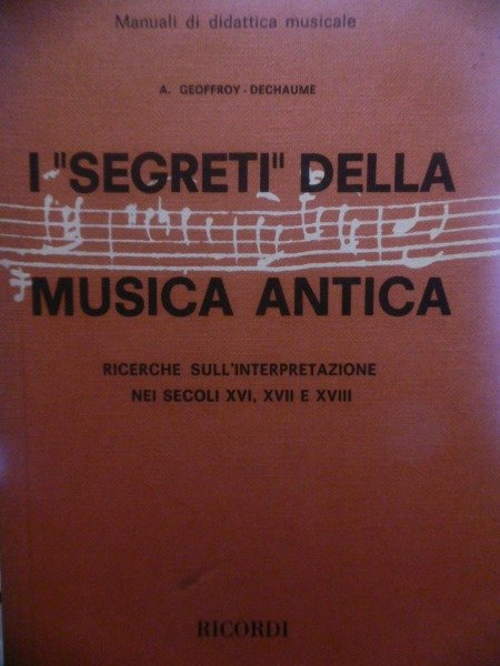 GEOFFROY DECHAUME A. SEGRETI DELLA MUSICA ANTICA (I) RICERCHE SULL'INTERPRETAZIONE NEI SECOLI XVI, XVII E XVIII
