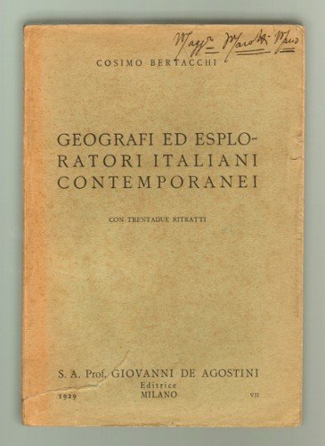In 8vo (cm 22,5x15,5) brossura originale, pag. 460 con 32 ritratti -- Biografie, documentazione, avventure di esploratori e geografi italiani alcuni meno noti.