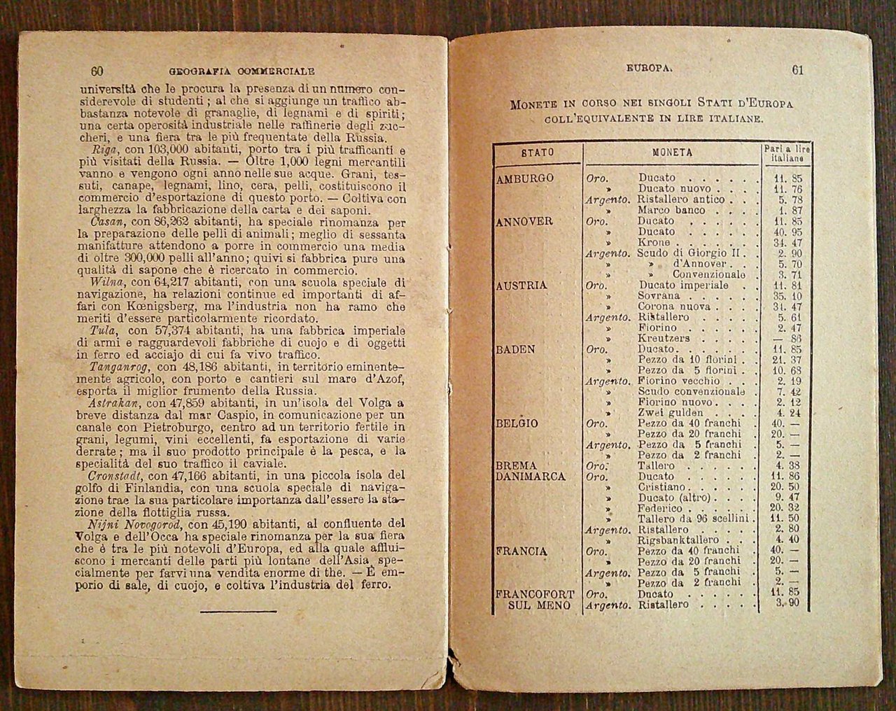 GEOGRAFIA COMMERCIALE - EUROPA - Biblioteca del Popolo, 1879