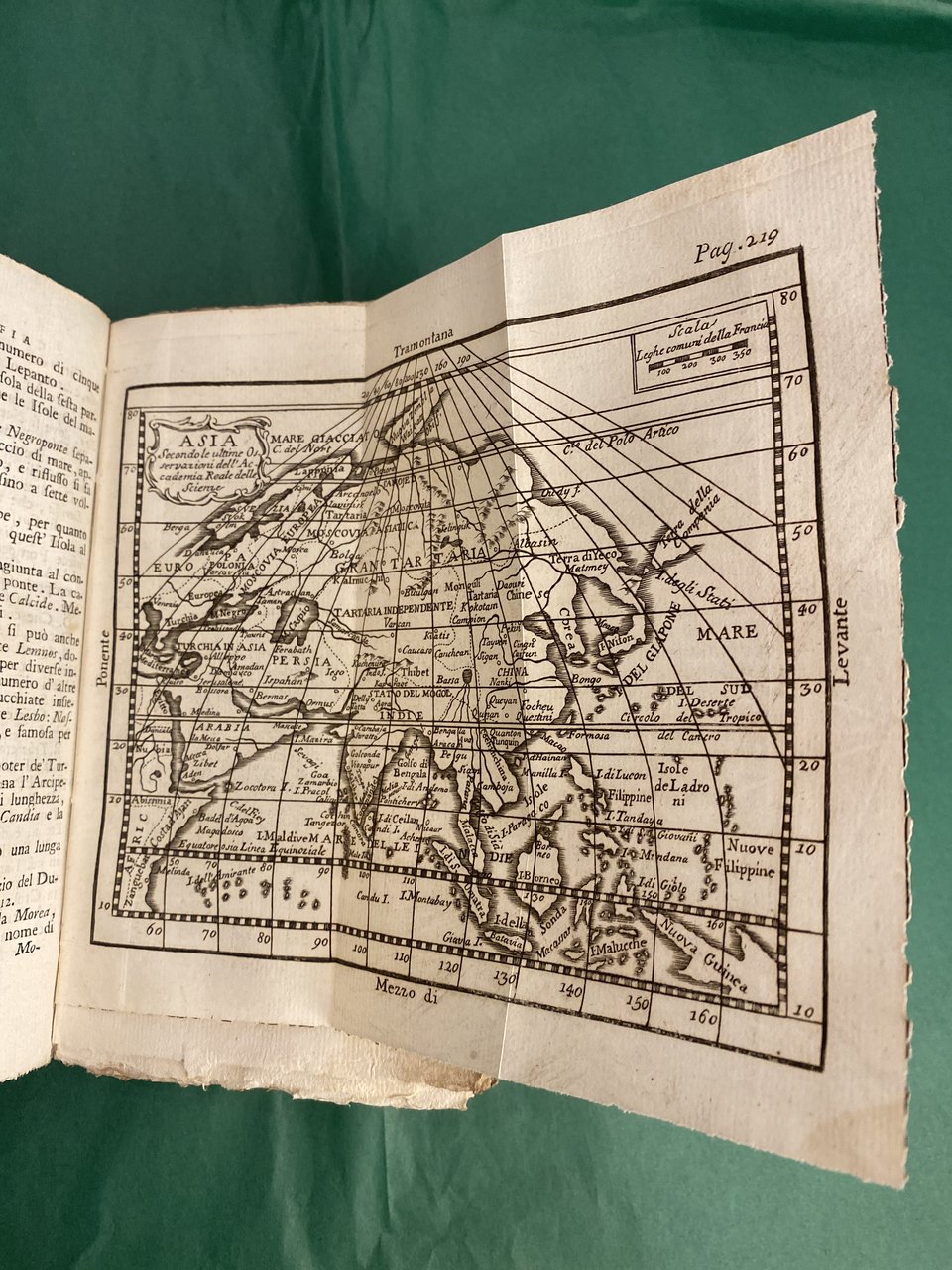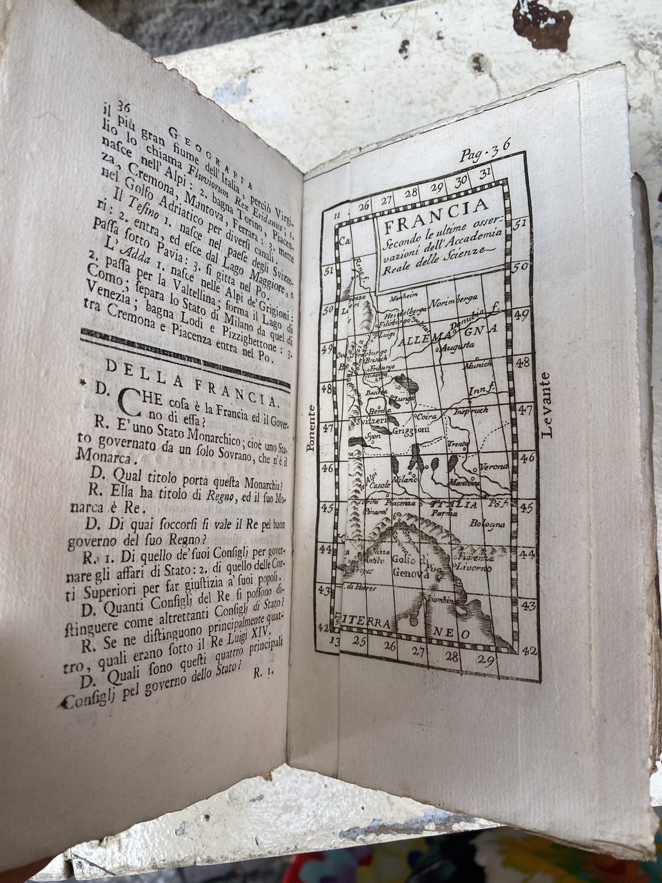 Vol. unico, in -16, pp. XII, 407, leg. cart. antica marmorizzata, dipinta, qualche screpolatura al dorso e piatti, n. 19 carte geografiche f.t. ripiegate, una piccola incisione nella parte dedicata alla Sfera. Qualche gora di umidità (soprattutto nella seconda parte dedicata alla Sfera), pagine candide, buone condizioni generali, libro raro.