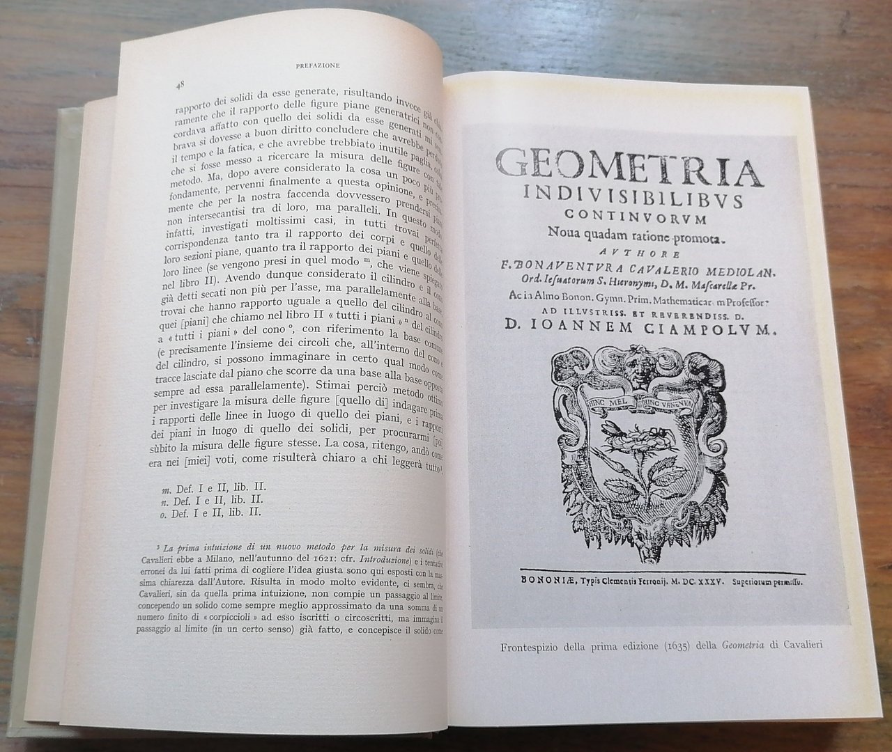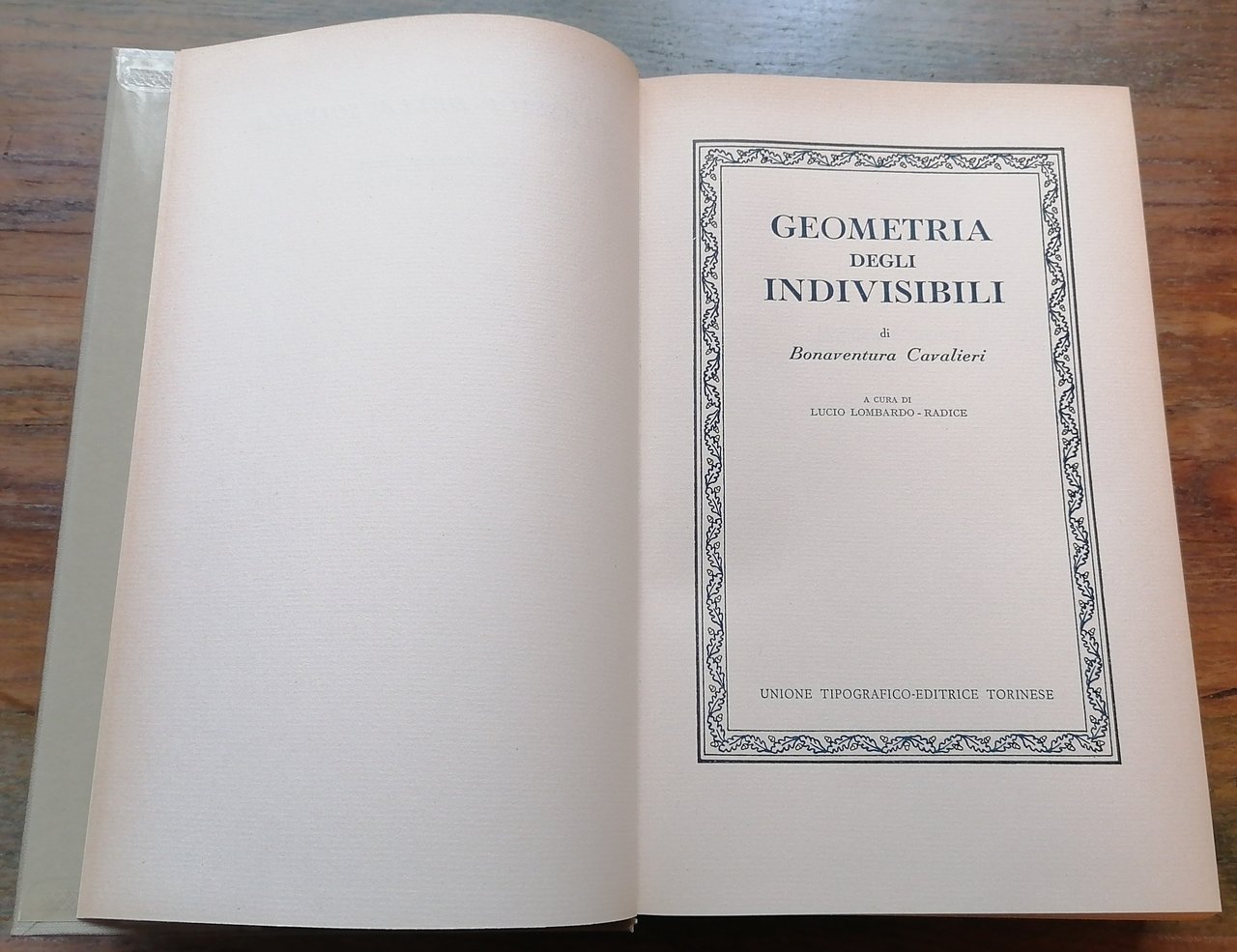 (Matematica; Metodo degli indivisibili) In 8°, legatura editoriale in piena tela color grigio chiaro, al dorso ricche impressioni in oro e titoli dorati su bande nere, sovraccoperta in acetato trasparente, pp. 870,(2), con numerose figure nel testo. A cura di Lucio Lombardo-Radice. Collana "Classici della scienza" (5) diretta da Ludovico Geymonat. Ottimo stato di conservazione.