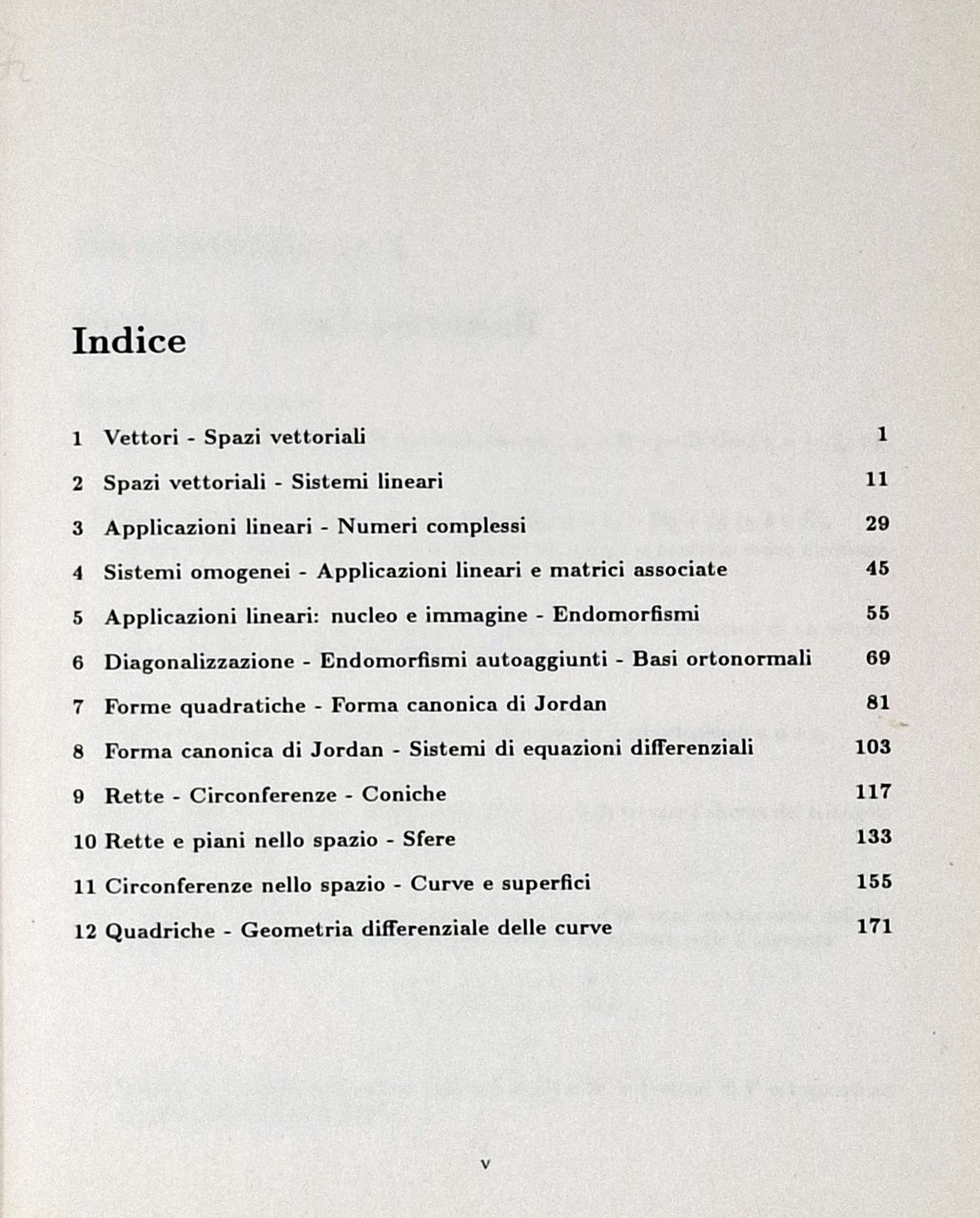 Formato: 17 x 21 cm circa, Pagine: V + 180. Stato di conservazione: decisamente buono. Copertina editoriale flessibile illustrata. 'Questo libro è rivolto agli studenti della Facoltà di Ingegneria. Esso consiste in dodici moduli contenenti ciascuno mediamente 11 esercizi svolti, riguardanti il programma di un corso di Geometria per studenti del primo anno. Il programma coperto dal contenuto del libro è quello che viene svolto ormai da anni nei corsi di Geometria del Politecnico di Torino [.]'.