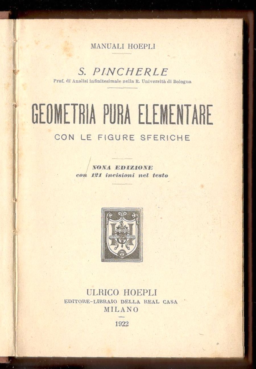 Geometria pura elementare con le figure sferiche. Nona edizione con 191 incisioni nel testo