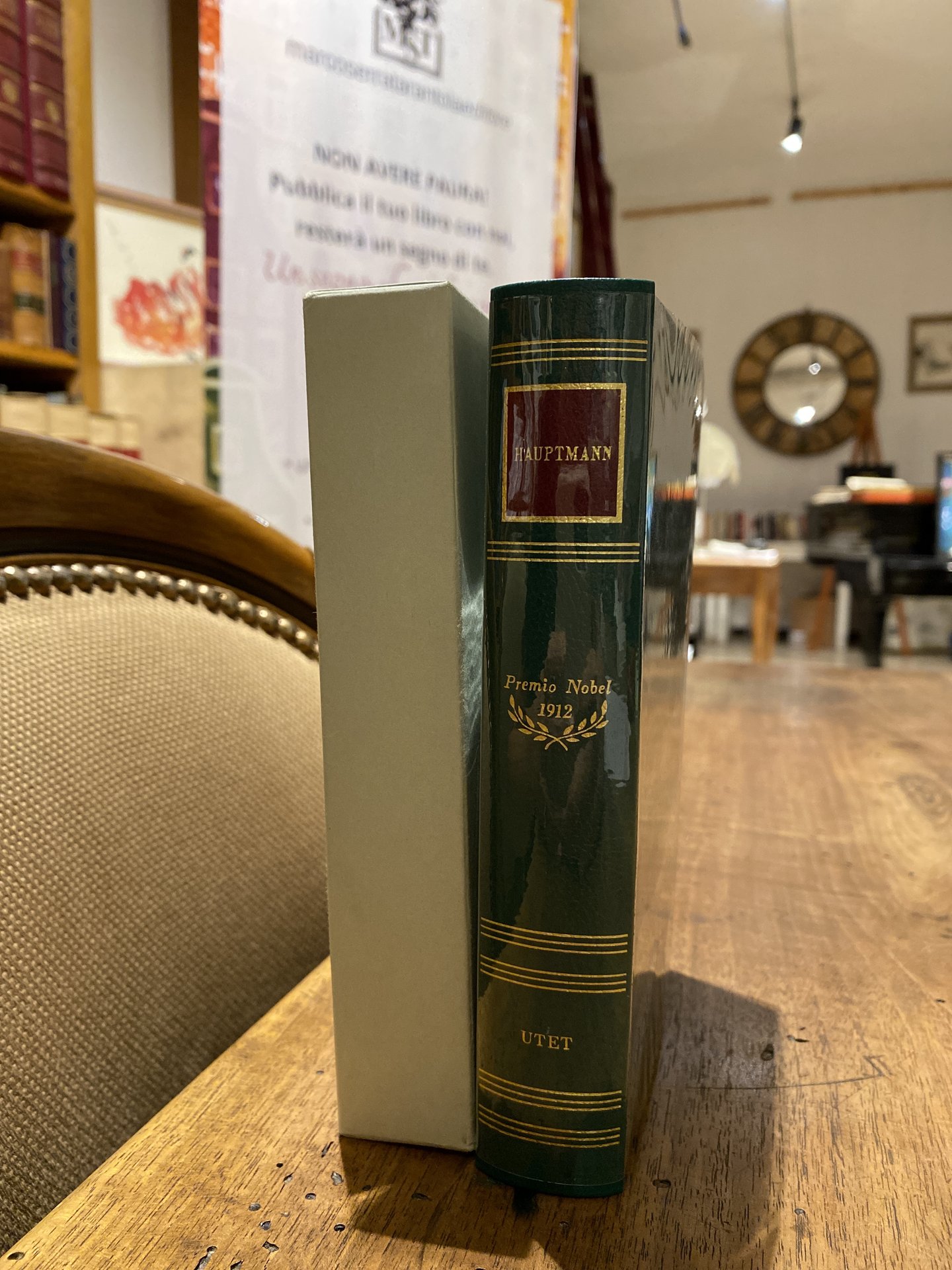 Volume della collezione UTET 1965 SCRITTORI DEL MONDO: I NOBEL. raccoglie le opere di PROSA E TEATRO. PRESENTA IL RITRATTO DI HAUPTMANN IN antiporta .Il libro è rivestito da una protezione in plastica ed è accompagnato dall’apposito cofanetto. Legatura in similpelle, con titolo in oro al dorso, in tassello rosso.