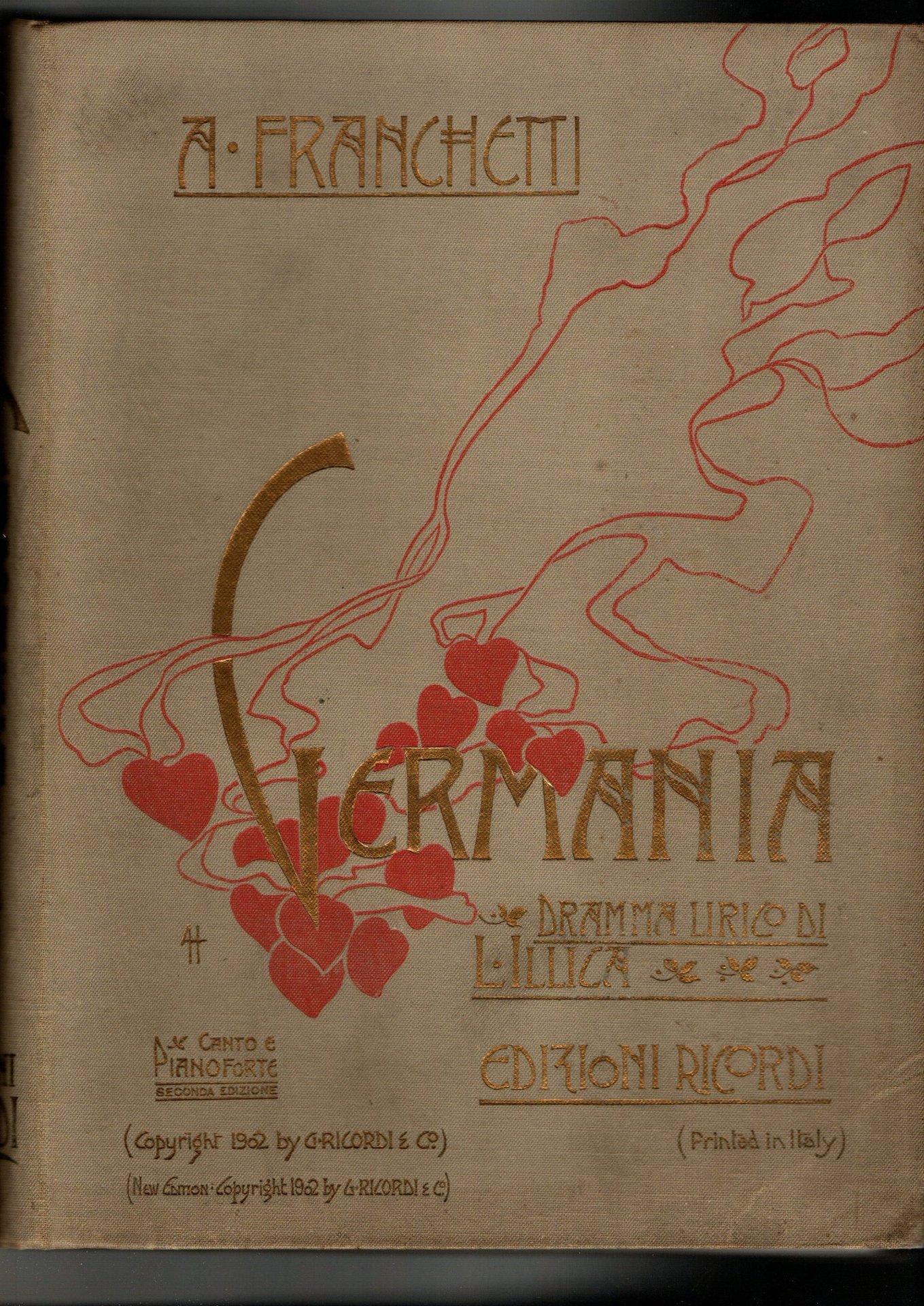 Germania. Dramma lirico in un prologo, due quadri e un epilogo di Luigi Illica. Musica di Alberto Franchetti. Prima rappresentazione: Milano, Teatro alla Scala, 11 marzo 1902. Canto e pianoforte. Riduzione di Ugo Solazzi