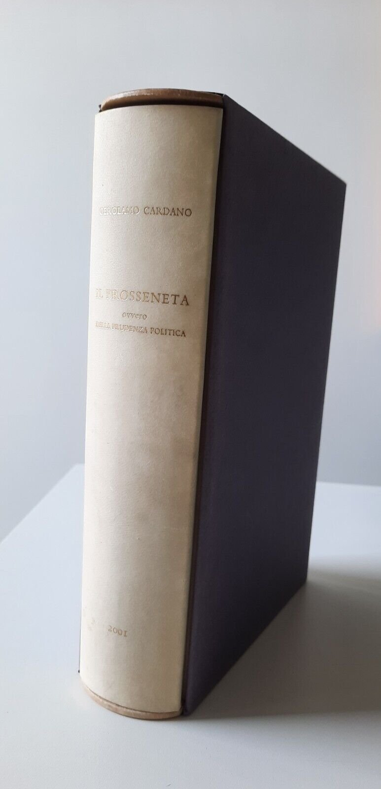 GEROLAMO CARDANO IL PROSSENETA ED. BERLUSCONI 2001In 8°, pag. 199, legatura editoriale, copertina in mezza pergamena con titolo in oro al piatto e al dorso, segnalibro editoriale e presentazione del volume su foglio sciolto.