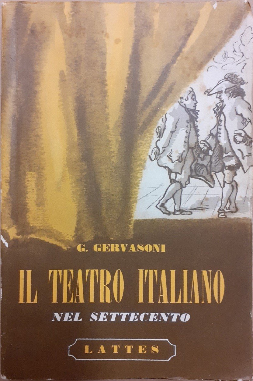 Gianni Gervasoni, Il teatro italiano nel Settecento. Metastasio Goldoni Alfieri. Un melodramma, due commedie e due tragedie, con introduzioni, note, letture critiche e tavole fuori testo, S. Lattes e C. Editori, Torino 1966, dodicesima ed., pp. XXV, 430, 8 c. di tavv. f.t. ill. b.n., cm 20, br. ed. Titolo al dorso: Il teatro italiano nel ‘700. Indice: Introduzione. La commedia, la tragedia e il melodramma fino al Settecento – P. Metastasio e la riforma del melodramma - Attilio Regolo, melodramma – Carlo Goldoni e la riforma della commedia – La locandiera, commedia – I Rusteghi, commedia – Vittorio Alfieri e la riforma della tragedia – Saul, tragedia – Oreste, tragedia – Appendici di letture (Letture metastasiane – Letture goldoniane – Letture alfieriane). Lievi tracce d’uso, minimi segni del tempo, per il resto esemplare ben conservato.
