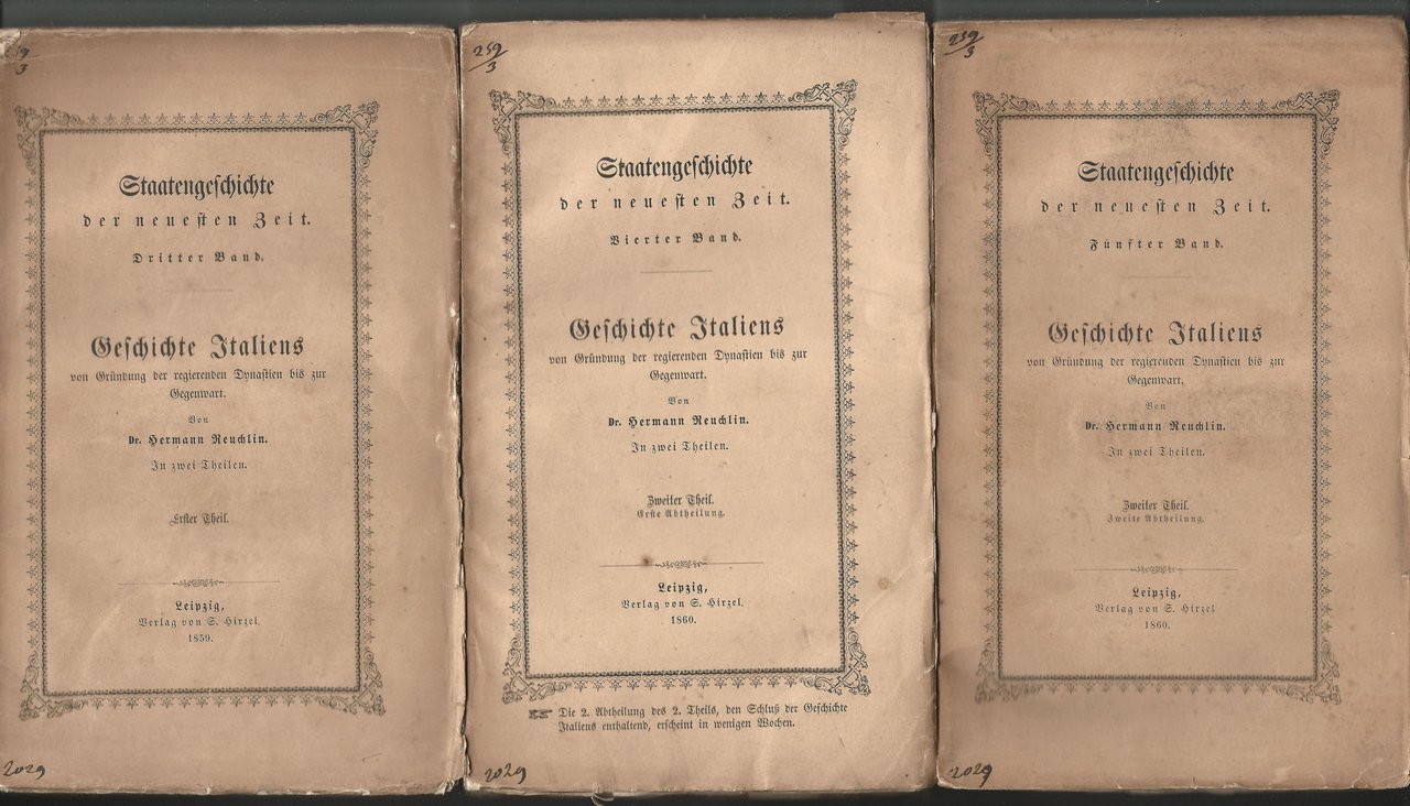 3 vol. in 8, p. VIII - 341 [3], VIII - 352 [2], 253[3], brossura originale.