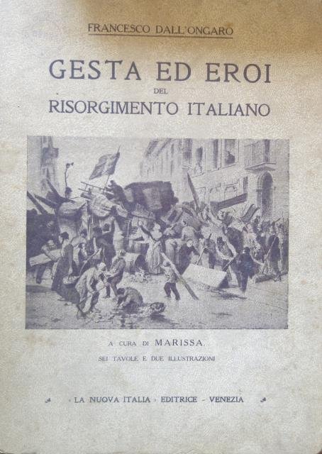 A cura di Marissa. “La Nuova Italia, Editrice Venezia” (s.d. ma 1940 circa). Sei Tavole e due illustrazioni. In 8vo, pp. 107 con Indice, leg. edit. in cartonato con titolo e immagine a carattere risorgimentale al piatto. Prima edizione (ne uscì una seconda senza data ma con la denominazione di seconda edizione) di questa raccolta di componimenti a carattere risorgimentale del grande poeta, drammaturgo e librettista italiano originario di Mansuè (Treviso). Uniforme ingiallimento e segni d'uso.