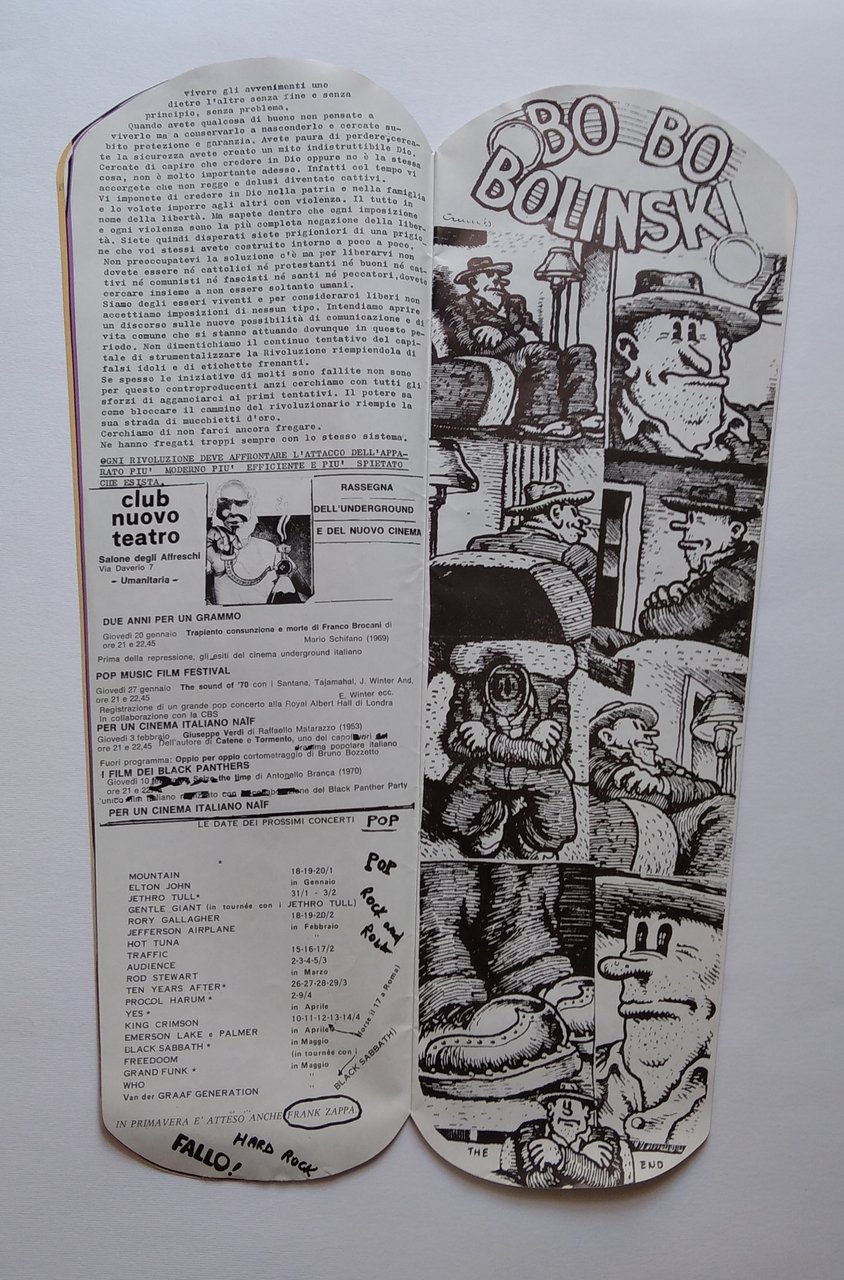 La rivista diretta Marcello Baranghini, esce a Milano nel 1972. il N°0 è a forma di joint e si occupa prevalentemente di musica e di droga, bella la grafica ed il formato particolare (cm49x17) -. Fumetti di Crepax, Crumb, Hayes ecc. Testi del Sima (organizzazione alternativa con settori specializzati in droga). Hanno collaborato a questo numero: Ines Curatolo, Barnaba Fornasetti, Giorgio Cerquetti, Lorenzo Vassallo, Enzo Manna. Sommario: Bo Bo Bolinski di R. Crumb, Frank Zappa, Emerson Lake & Palmer, Santana, Inserto SIMA sulla droga, Mc5 / Jeff Beck, Richard Alpert / Baba Ram Das, L.S.D., Miles Davis Group, Jimi Hendrix. Rivista molto rara e in ottimo stato.
