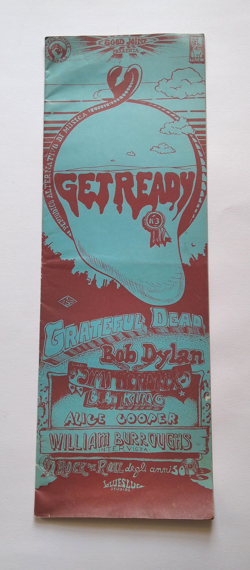 Numero 3 della rivista diretta Marcello Baranghini, esce a Milano nel 1972 in 4 numeri. La rivista edita da GOOD JOINT si occupa prevalentemente di musica e di droga, bella la grafica ed il formato particolare (cm49x17). Fumetto di Dave Sheridan -- Sommario: Grateful Dead, Bob Dylan, Jimi Hendrix, B.B. King, Alice Cooper. Intervista a William Burroughs, Rock'n Roll degli anni 50.
