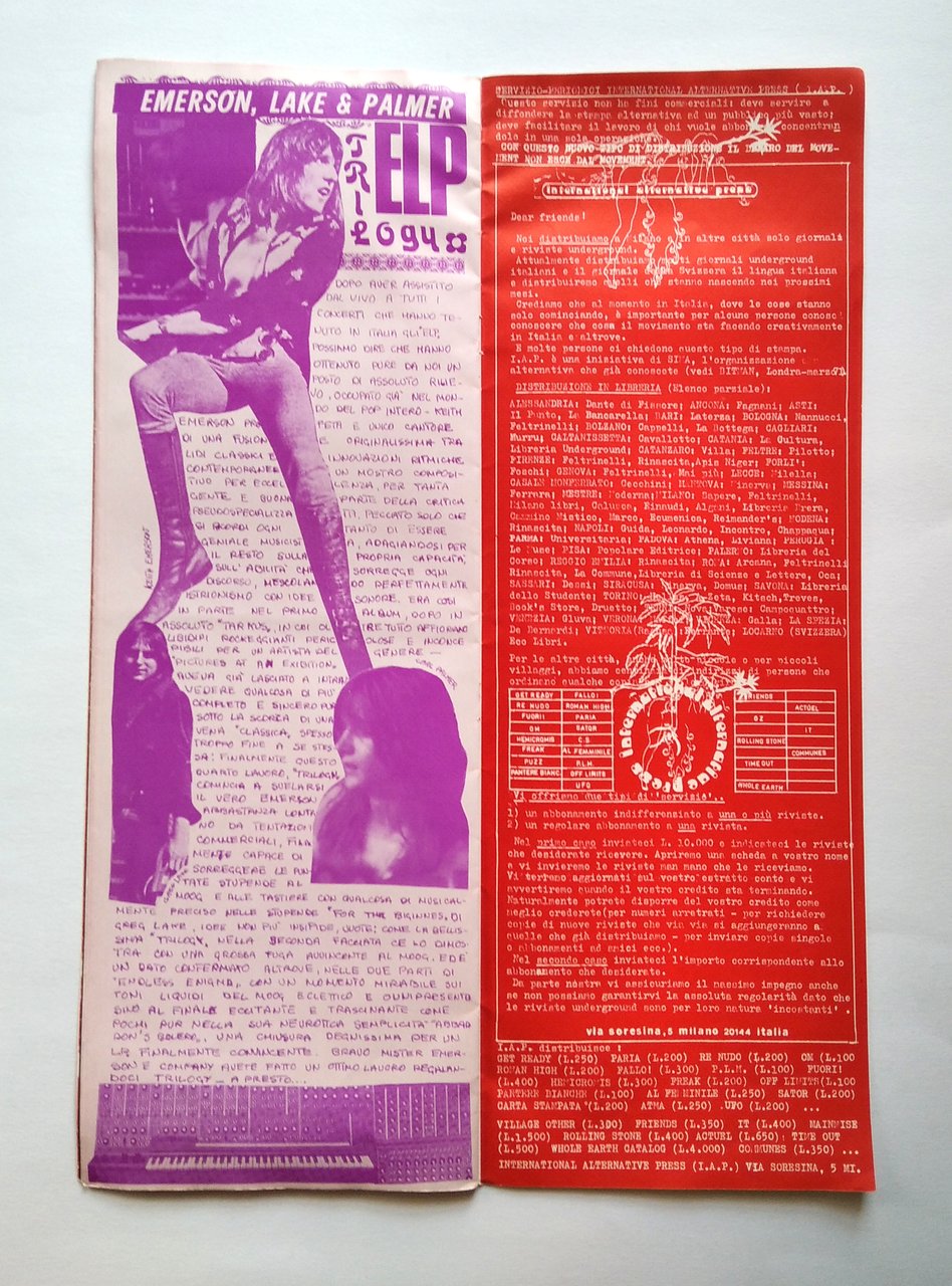 Numero 4 della rivista diretta Marcello Baranghini, esce a Milano nel 1972 in 4 numeri. La rivista edita da GOOD JOINT si occupa prevalentemente di musica e di droga, bella la grafica ed il formato particolare (cm49x17).-- Frank Zappa, Pete Townshend, Emerson Lake & Palmer ecc.ecc. e Una nuova puntata del fumetto di Dave Sheridan "Le avventure di Mario Dell'Erba".