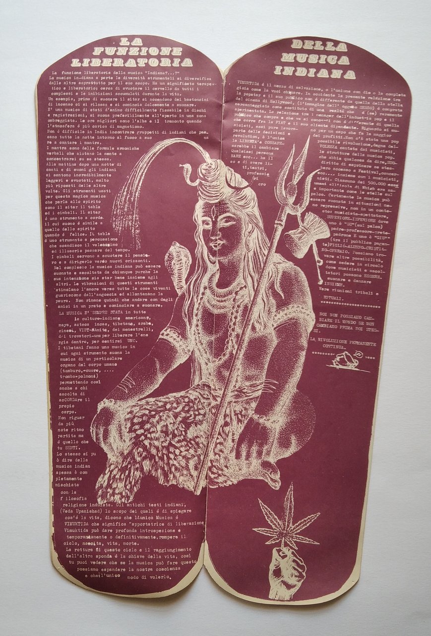 Numero Uno della rivista diretta Marcello Baranghini, esce a Milano nel 1972 in 4 numeri. Il N°1 è a forma di joint e si occupa prevalentemente di musica e di droga, bella la grafica ed il formato particolare (cm49x17). Fumetti di Crepax, Crumb, Hayes ecc. Testi del Sima (organizzazione alternativa con settori specializzati in droga), collaboratori; Lorenzo Vassallo. Fabio Tita, Luigi Valcarenghi, Marco Amante, Francesca Caparotta, Giorgio Cerquetti. Recensioni e interviste musicali Rory Gallagher, Live Evil, Jhon Mc Laughlin, Elton Dean, Bob Dylan, Rolling Stone, Erotismo e Rock ecc. Rivista molto rara e in ottimo stato.