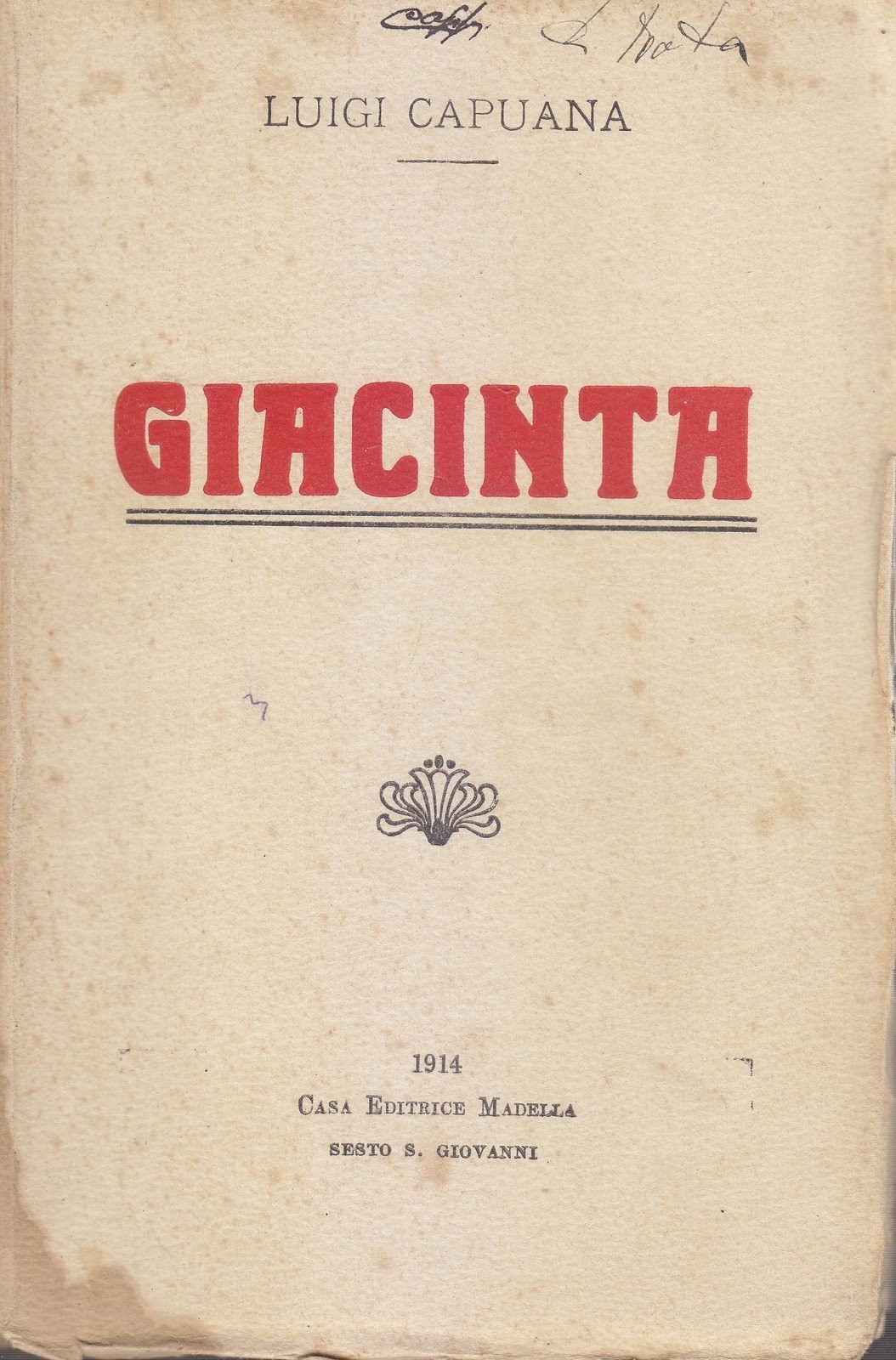 GIACINTA di Luigi Capuana 1914 Casa Editrice Madella libro romanzo narrativa
