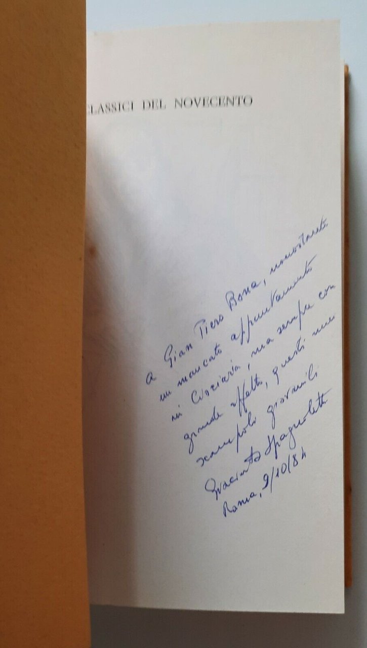 GIACINTO SPAGNOLETTI VERSI D'OCCASIONE EDIZIONI DEI DIOSCURI 1984 AUTOGRAFATO