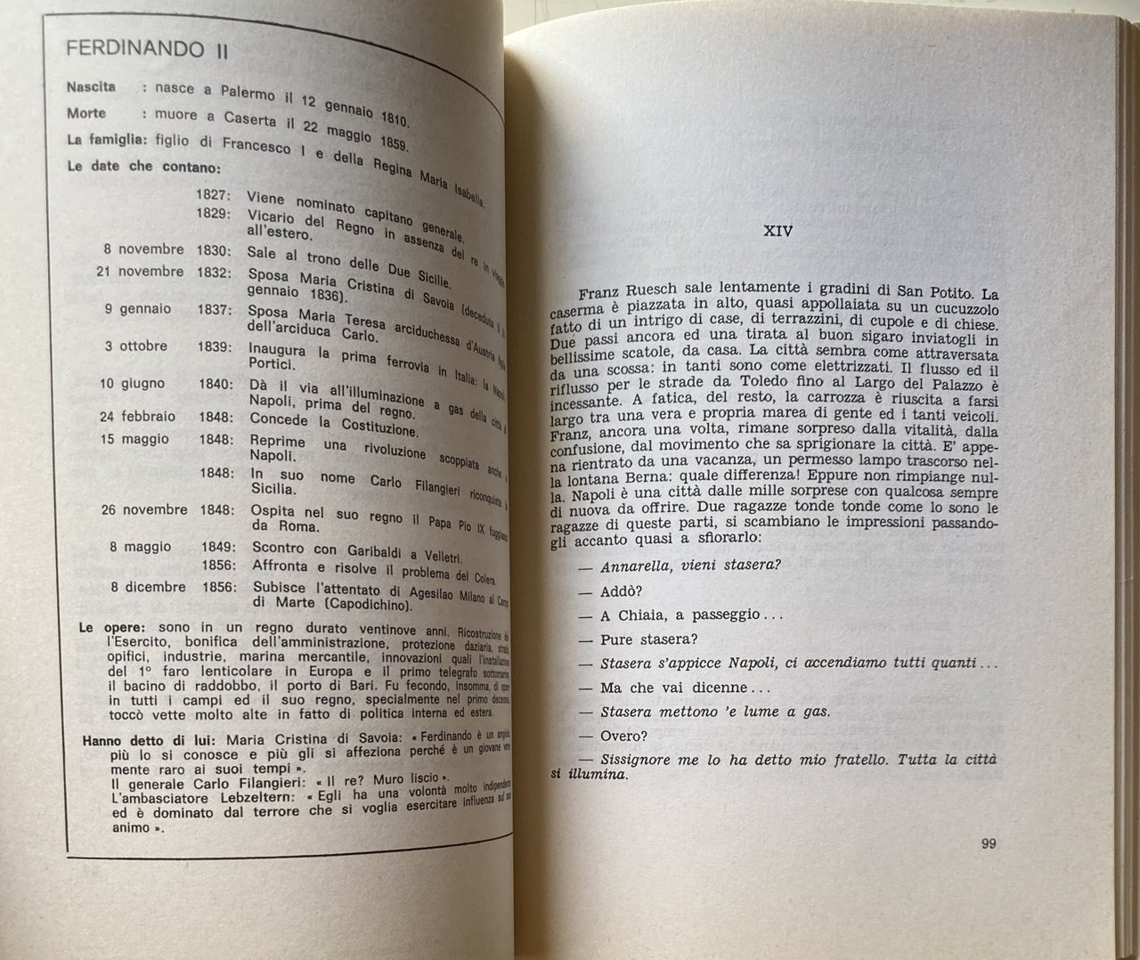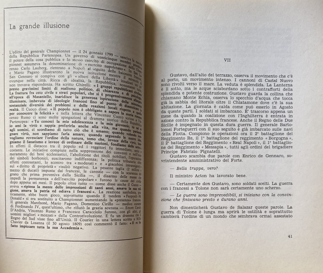 Soggetti: Regno di Napoli Storia moderna Settecento Ottocento Dinastie reali Re regine Carlo di Borbone Sovrani Ferdinando IV Cardinale Fabrizio Ruffo Armata cristiana Sanfedisti Giuseppe Bonaparte Gioacchino Murat Ussaro Francesco I Ferdinando II Napoletani Carrozza Aristocrazia Nobiltà Pietrarsa Officina Francesco II Nord Sud Unità Due Sicilie Jacobins Stinkers King's Soldiers 1799 Rivoluzione francese Rivoluzione napoletana Bernardo Tanucci Giuseppe Galasso Illuminismo Giannone Giambattista Vico Gaetano Filangieri Ferdinando Galiani Acton Repubblica Partenopea Governo Editto Generale Championnet Potere Esercito Occupazione Carlo Lauberg San Gennaro Libertà Ghirelli Ceto civile Classi popolari Masaniello Ideologie Vincenzo Cuoco Popolo Beni ecclesiastici Abolizione Titoli nobiliari Simboli borbonici Politica Moderati Proprietà Francesi Carestie Grano Cause Crollo Reazione sanfedista Mario Pagano Domenico Cirillo Eleonora Pimentel Fonseca Martiri rivoluzionari Ettore Crafa D'Andria Courier Francesco Caracciolo Pietro Colletta Reame Gino Doria Capitale Brigantaggio Frà Diavolo Feudalità Feudalesimo Maria Carolina Prussia Russia Inghilterra Diplomazia Metternich Costituzione Guerra Guglielmo Pepe Vicerè Sudditi Baronie Bellegarde Congresso di Vienna Abruzzi Austriaci Privilegi Reggia Caserta San Leucio Seta Riforme Tassazione Scambi commerciali Università Economia Europa Commercio Meccanica Terra di Lavoro Modernizzazione urbanistica Luigi Vanvitelli Giuseppe Sammartino Cappella Sansevero Raimondo di Sangro Palazzo reale Portici Domenico Cattaneo Gesuiti Asburgo-Lorena Manifatturiero Horatio Nelson William Hamilton Monitore Napoletano Pasquale Baffi Giuseppe Leonardo Albanese Ignazio Ciaia Nicola Palomba Luisa Sanfelice Michele Granata Amiens Stato Pontificio Austerlitz Mezzogiorno Basilicata Calabria Resistenza antinapoleonica Filoborbonici Itri Michele Pezza Alessandro Mandarini Massacro Lauria Saliceti Miot Pierre-Louis Roederer Giuseppe Zurlo Davide Winspeare Riforme Garibaldi Spedizione dei mille Risorgimento Meridionalismo Saggi storici illustrati Libri Vintage fuori catalogo Collezionismo Bibliografia Riferimento Toledo Gustavo Salazar Savoia Cavour Piemonte Franz Ruesch Barricate Rivolte Ribellioni Giuseppe Caprile Opificio Militaria Svizzera Phaeton Charrette Landau Tilbury Deaumont Do-Kart Mail London Carrozze Narrativa storica Romanzi Letteratura Chiaia Posillipo Marina militare Maria Sofia Bilancio Debito Imposta fondiaria Dazi Rendita Reddito Miollis Montigny Artiglieria Codici Benedetto Croce Giustino Fortunato Baccher Quadri Riassuntivi Kingdom of Naples Modern history Eighteenth Nineteenth century Royal dynasties King queens Charles of Bourbon Sovereigns Ferdinand IV Cardinal Christian army Sanfedists Hussar Neapolitans Carriage Aristocracy Nobility Workshop North South Unit Two Sicilies Neapolitan French Revolution Enlightenment Neapolitan Republic Government General Edict Power Army Occupation Freedom Civil Classes popular Ideologies People Ecclesiastical goods Abolition Noble titles Bourbon symbols Politics Moderates Property French Famines Wheat Causes Collapse Reaction Revolutionary martyrs Realm Capital Brigandage Feudality Feudalism England Diplomacy Constitution War Viceroys Subjects Baronies Congress Austrians Privileges Royal Palace Silk Reforms Taxation Trade University Economy Europe Commerce Mechanics Land of Work Urban modernization Royal palace Jesuits Habsburg-Lorraine Manufacturing Papal State Anti-Napoleonic resistance Pro-Bourbons Massacre Reforms Expedition Thousand Southernism Illustrated historical essays Out of print books Collectibles Bibliography Reference Savoy Piedmont Barricades Rebellions Factory Switzerland Carriages Historical fiction Novels Literature Military navy Budget Debt Land tax Duties Income Income Artillery Codes Summary Framework