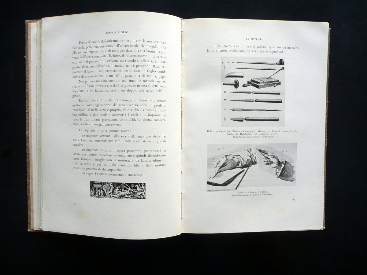 Giacomo Francesco Guarnati, Bianco e Nero Avviamento alla comprensione e alla raccolta della stampa d'arte occidentale con 227 illustrazioni presentato dal Dott. Achille Bertarelli e dal Prof. Giorgio Nicodemi Hoepli, Milano 1937; cm 25,5x18; pp. XVI-374, con 227 ill. in b/n nel t. e fuori t.; legatura in mezza tela con titolo impresso in oro entro tassello al dorso; presenti le brossure ed. originali, ben conservate. Condizioni di conservazione Coperta ben conservata con piccole lievi abrasioni, margini con poche minime ammaccature, dorso leggermente ingiallito e con alcune piccole lievi bruniture. Interni buoni con qualche leggera brunitura principalmente alle prime e alle ultime pagine. SETT176.L15887 N