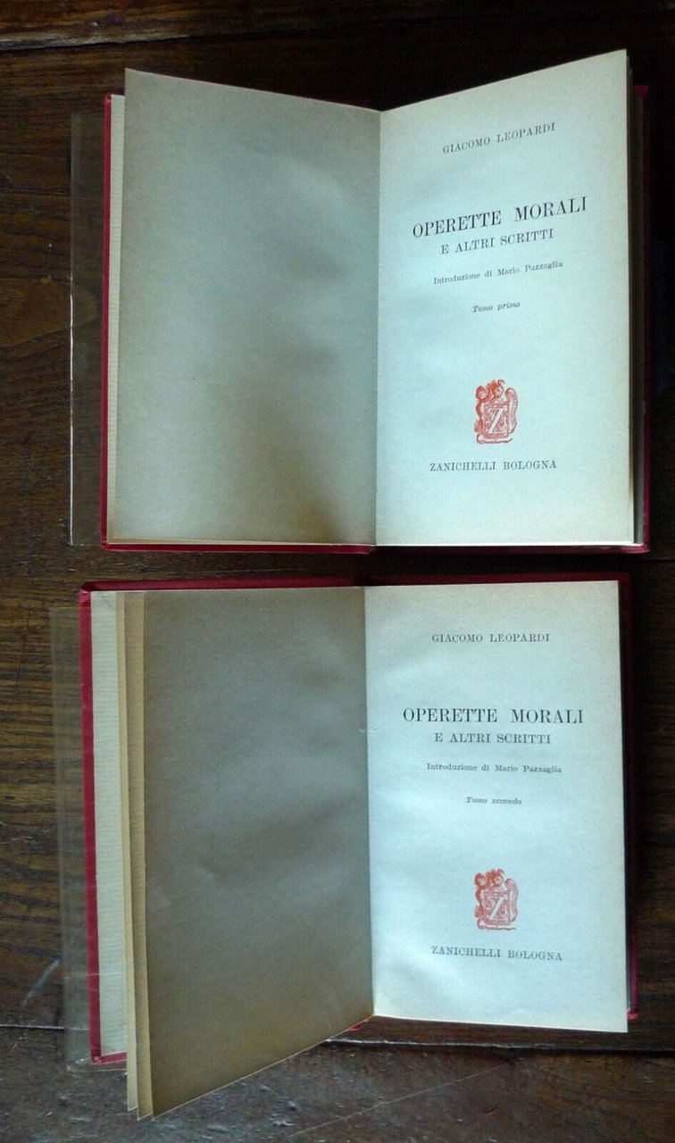 Giacomo Leopardi,OPERETTE MORALI E ALTRI SCRITTI,2 VOLL.,1966 Zanichelli
