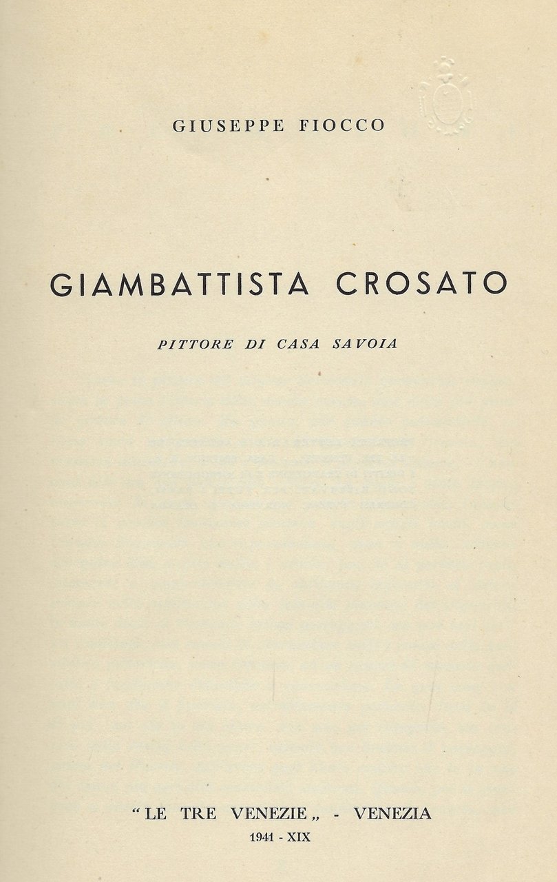 Saggio di Giuseppe Fiocco sull'artista decoratore Giambattista Crosato (Venezia 1686 - ivi 1758).