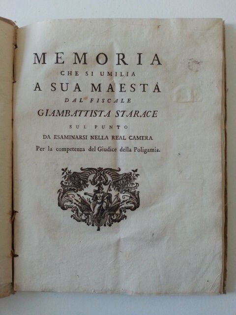 GIAMBATTISTA STARACE MEMORIA PER LA COMPETENZA DEL GIUDICE DELLA POLIGAMIA 1700