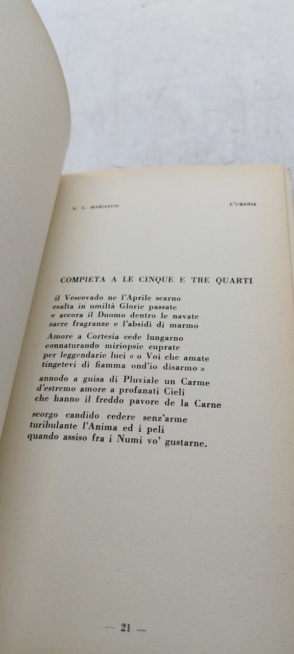 gian luigi marianini l'urania poesie 1956 . , 1956 italiano, pp.69 ^^^