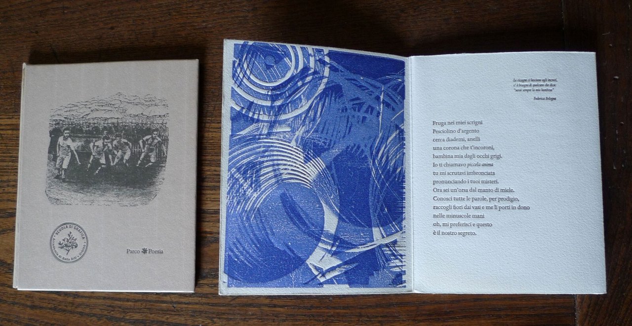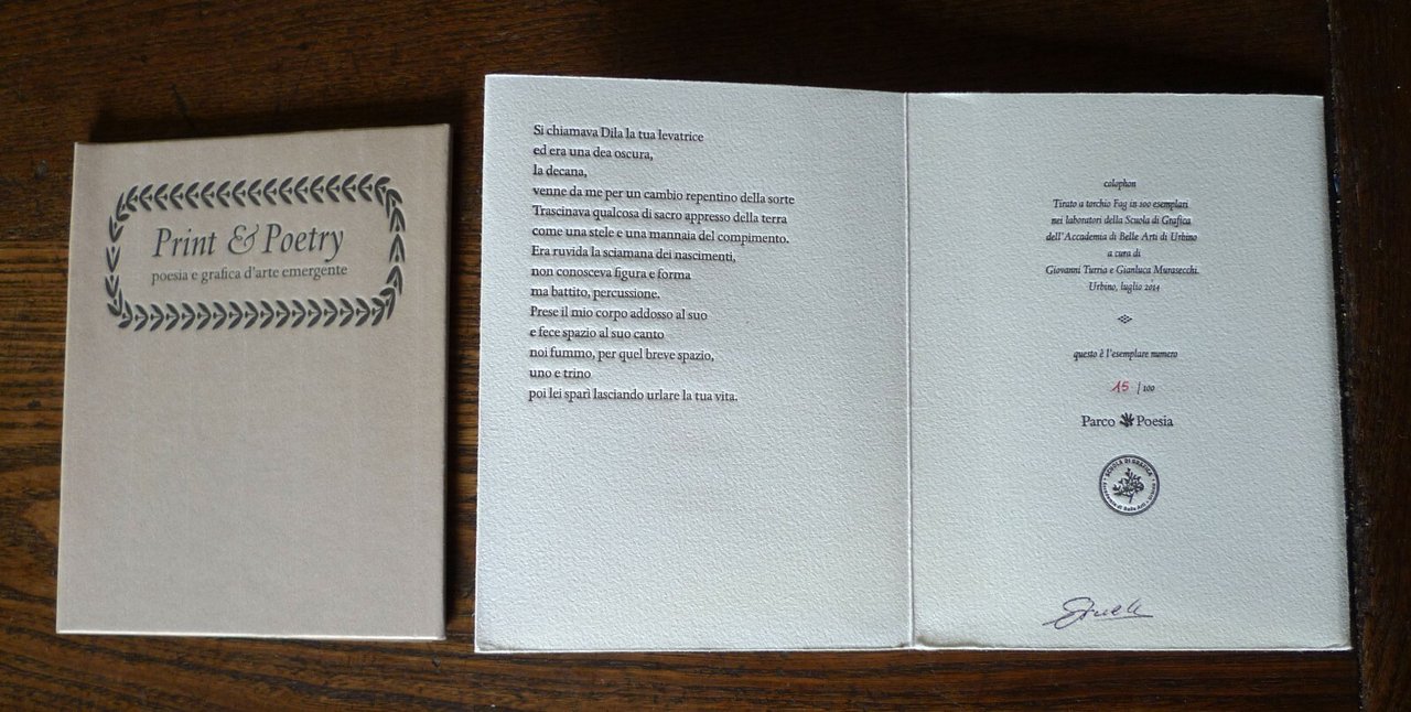 Sarah Tardino,PESCIOLINO D'ARGENTO.Xilografia di Matteo Spinelli.Print & Poetry, Urbino 2014,tiratura di 100 esemplari numerati,ESEMPLARE n.15,brossura, rilegatura "a fisarmonica, pp.8,custodia in cartoncino,peso: g.300cod.9396CONDIZIONI DELL'OPUSCOLO: come nuovoCOLOPHONTirato a torchio Fag in 100 esemplarinei laboratori della Scuola di Graficadell'Accademia di Belle Arti di Urbinoa cura diGiovanni Turria e Gianluca Murasecchi.Urbino, Luglio 2014