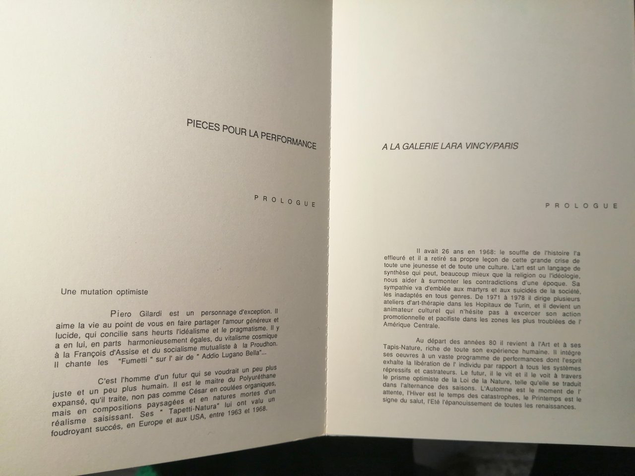 formato 21X14. Brossura editoriale pagine 20 tutte doppie. Testo di Pierre Restany. Numerose riproduzioni a colori delle opere. Firma autografa di Gilardi. Bella copia