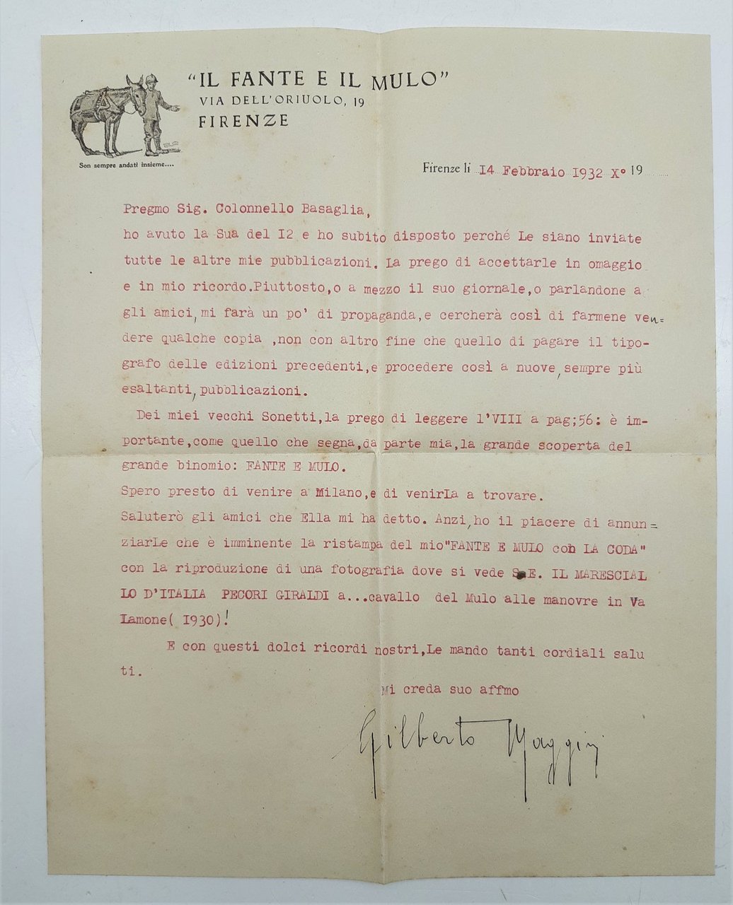 Gilberto Maggini I Sonetti del Fante dedica autografa pi˘ due lettere autografe dell'autore 1922