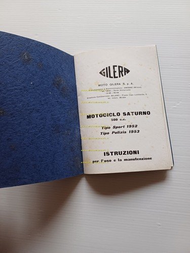 Gilera Saturno 500 Sport 1952 - Polizia 1953 manuale uso manutenzione originale