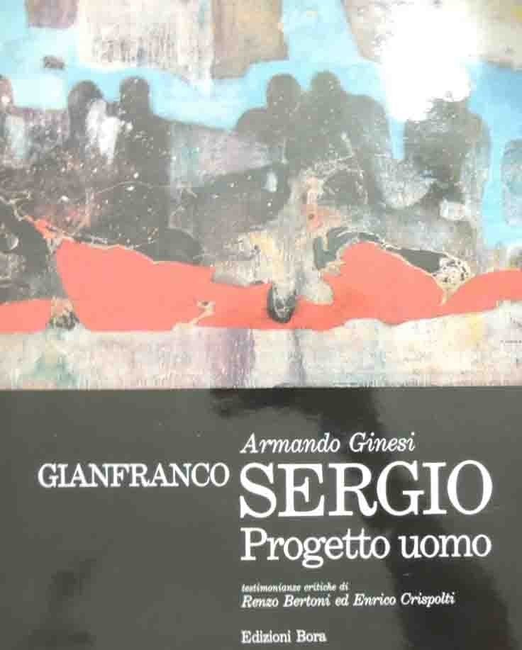 Armando Ginesi, Gianfanco Sergio. Progetto uomo, testimonianze critiche di Renzo Bertoni, Memoria e destino - Enrico Crispolti, Incontro d’apertura con Gianfranco Sergio, Edizioni Bora, Bologna 1984, pp. 93, ill. b.n. e col., cm 31, cart. ed. con titoli e ill. al dorso e ai piatti, sovraccoperta e cofanetto muto in cartoncino ed. Testi in italiano, francese e tedesco. Traduzioni di Monique Tollet e Antonietta Consonni. Dedica manoscritta dell’Artista allaseconda carta bianca. Minime tracce d’uso al cofanetto, lievissima ingiallitura della carta, per il resto perfetto.