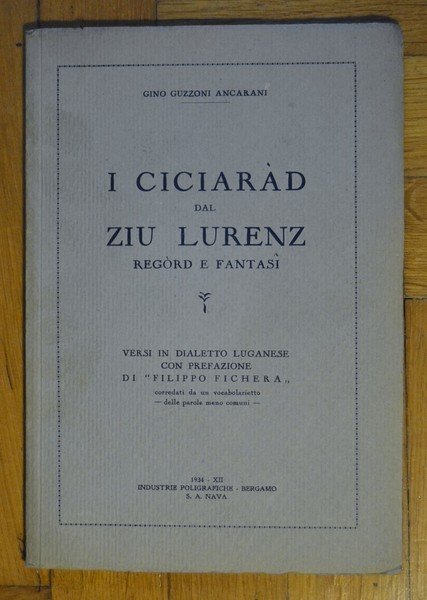 *GINO GUZZONI ANCARANI. I ciciaràd dal ziu Lurenz, regòrd e fantasì. Versi in dialetto luganese con prefazione di Filippo Fichera, corredari da un vocabolarietto delle parole meno comuni.