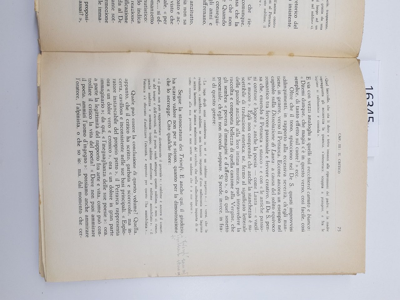 in precarie condizioni copertina morbida editoriale con aloni e fioriture ai piatti e al dorso, uno strappo al piatto anteriore e al dorso, copertina staccata dal volume, tagli irregolari bruniti, interno in condizioni accettabili alcune sottolineature e note a penna, lieve brunitura al margine esterno delle pagine, legatura allentata numero pagine 168, dimensioni cm 25,2 * 18 numerose note manoscritte a matita ai margini bianchi.