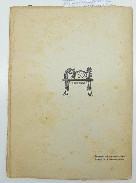 legatura morbida editoriale in condizioni precarie con bruniture e fioriture diffuse ai piatti, ex libris al margine interno del piatto anteriore, tagli irregolari e bruniti, interno in discreto stato, alcune fioriture e bruniture alle pagine interne che non disturbano la lettura, numero pagine 32 dimensioni cm 21,5 x 15,5