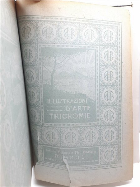 volume in precarie condizioni, legatura rigida in tela blu editoriale con titoli in oro al piatto anteriore e al dorso, piatti con sporcizie segni di usura e lievi bruniture, piccole spellature e mancanze ai margini, dorso in condizioni accettabili con una mancanza pieghe e rotture ai margini, titolo scolorito, fogli di guardia al margine interno incollati alla seconda di copertina con due strappi al margine inferiore rispettivamente di cm 11 e di cm 7,5 in precarie condizioni, lievi fioriture e bruniture al margine esterno, frontespizio e prime 4 pagine con uno strappo di cm 2 al margine inferiore, frontespizio con fioriture e aloni diffusi, timbro di possesso al margine inferiore, prime 8 pagine staccate dal libro, legatura allentata, su carta patinata, interno in discreto stato con lievi fioriture e lieve alone al margine esterno delle pagine, velina a protezione delle stampe in con fioriture, alcune lievi abrasioni alle pagine interne per scollamento senza perdita del testo, numerose figure in b.n. e 16 tavole a colori applicate a cartoncini fuori testo, numero pagine 184 dimensioni cm 34 x 25