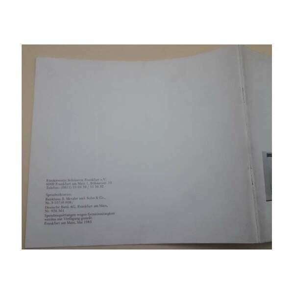 In 8' carre', br. ed. pp. nn., catalogo della mostra, BfG(Bank fur Gemeinwirtschaft), Frankfurt am Main; lievi segni d'uso alla cop., interno in buono stato. ***Due to bureaucratic reasons, books dated over 70 years old cannot be immediately exported, please contact us before placing the order.***