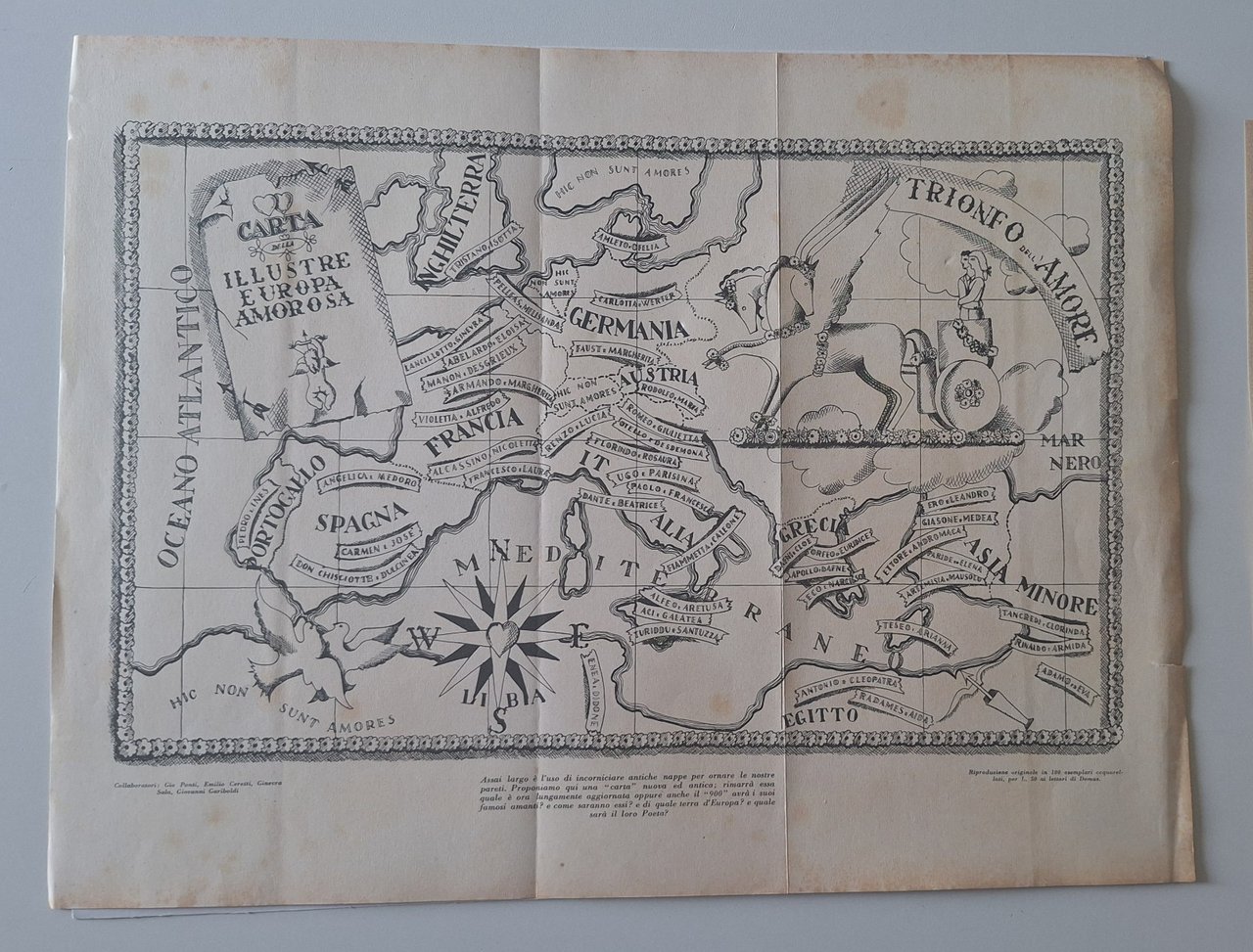 GIO PONTI GIOVANNI GARIBOLDI CARTA DELLA ILLUSTRE EUROPA AMOROSA DOMUS 1930