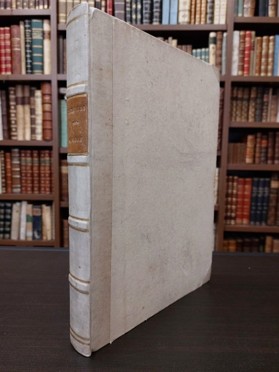 In-4° (cm. 30), legatura successiva in mezza pergamena e angoli, dorso a nervi con titolo in oro su tassello nocciola e filetti sempre in oro; pp. [4] VII [1b] 239 [3] in stato molto buono (leggere e sporadiche fioriture). Bella incisione a piena pagina all'antiporta del celebre quadro della limosina di Giobbe di Guido Reni. Grande capolettera iniziale, incisione al frontespizio e graziose piccole incisioni al fondo dei Canti. Esemplare molto buono. (SB7)