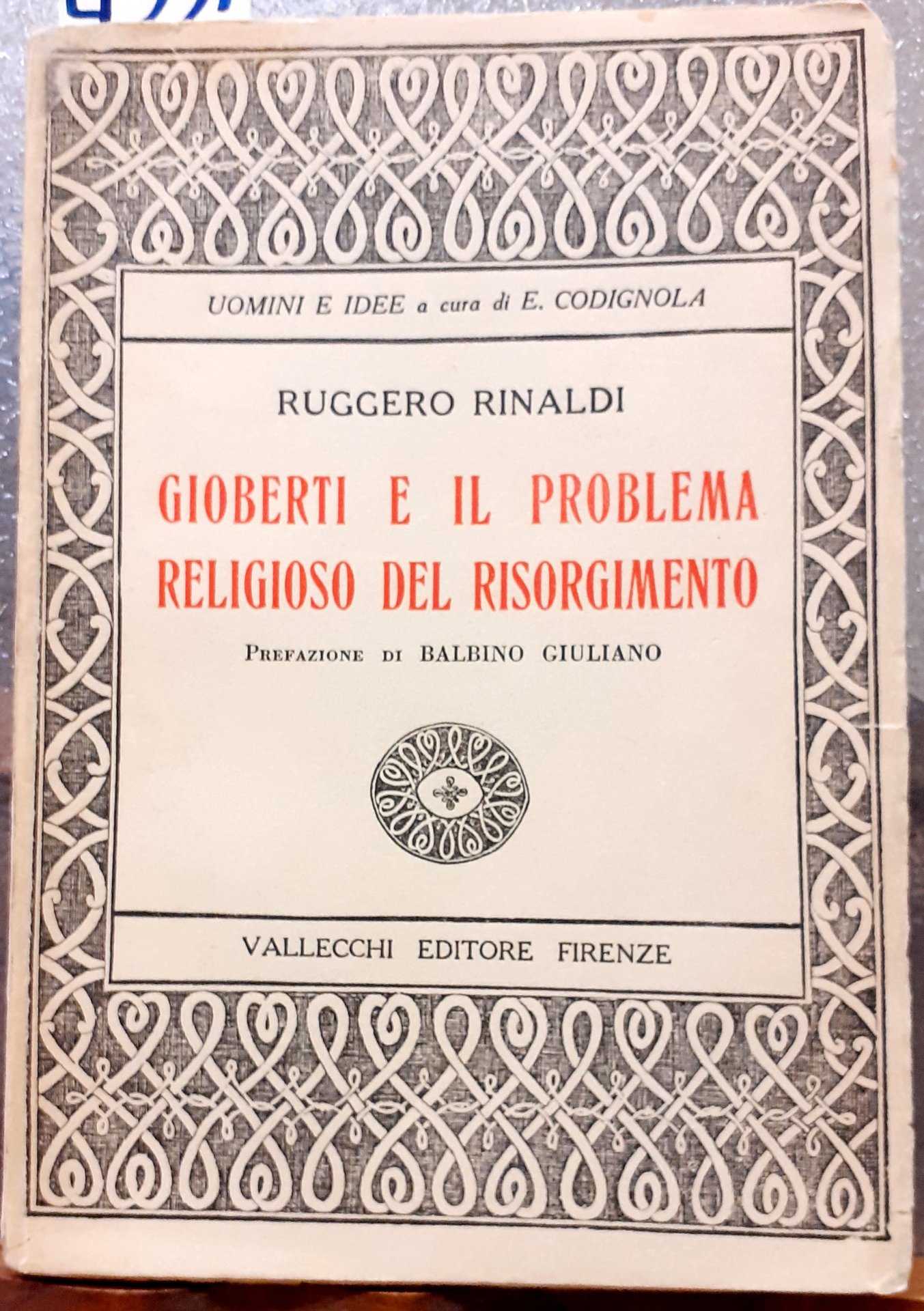 GIOBERTI E IL PROBLEMA RELIGIOSO DEL RISORGIMENTO. Prefazione di BALBINO GIULIANO.,