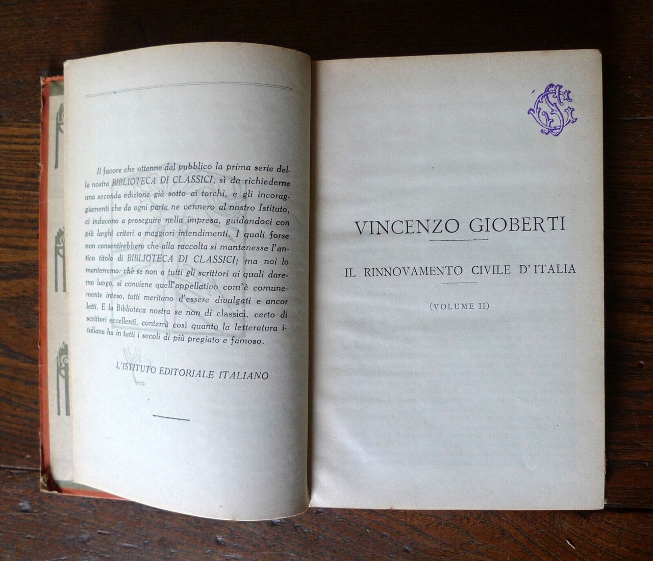 Gioberti,IL RINNOVAMENTO CIVILE D'ITALIA Vol.I-II-IV,1924 Ist.Ed.Italiano